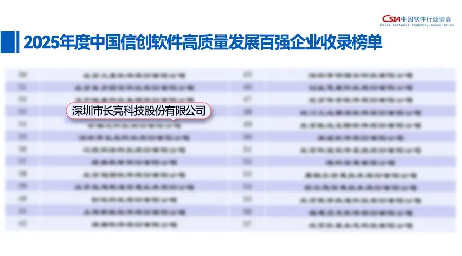 近日,在中國軟件行業(yè)協(xié)會、華東師范大學(xué)聯(lián)合主辦的2025中國軟件高質(zhì)量發(fā)展大會上,長亮科技憑借突出的技術(shù)創(chuàng)新與行業(yè)貢獻(xiàn),一舉斬獲“中國軟件誠信示范單位(2025-2028年)”、“2025年度中國軟件高質(zhì)量發(fā)展前百家企業(yè)”兩項(xiàng)重磅榮譽(yù)。此外,公司亦入選中國軟件行業(yè)協(xié)會發(fā)布的“2025年度中國信創(chuàng)軟件高質(zhì)量發(fā)展百強(qiáng)企業(yè)收錄榜單”,充分彰顯了其在金融科技領(lǐng)域的強(qiáng)大實(shí)力與標(biāo)桿姿態(tài)。